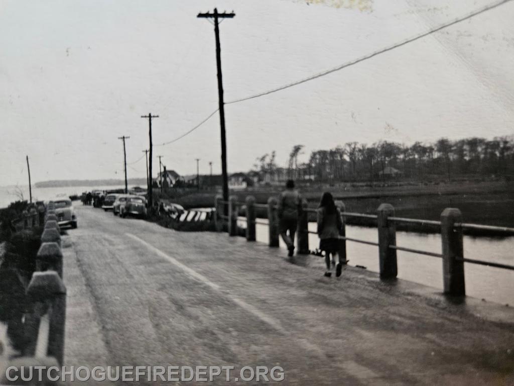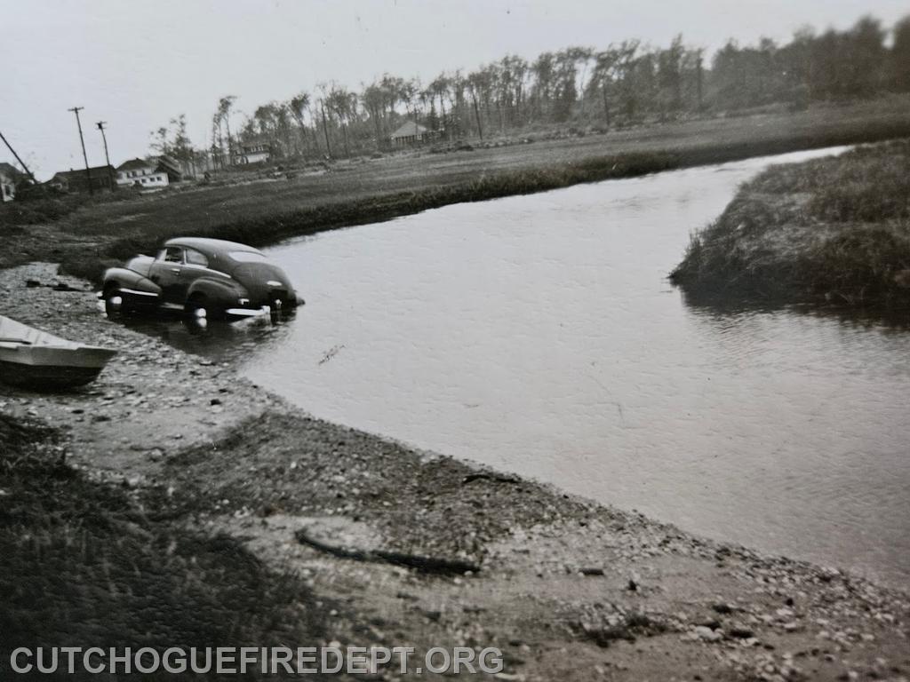 | This week we look back at images from a motor vehicle accident occurring in 1947 where a car ran off the roadway and into the water of West Creek.