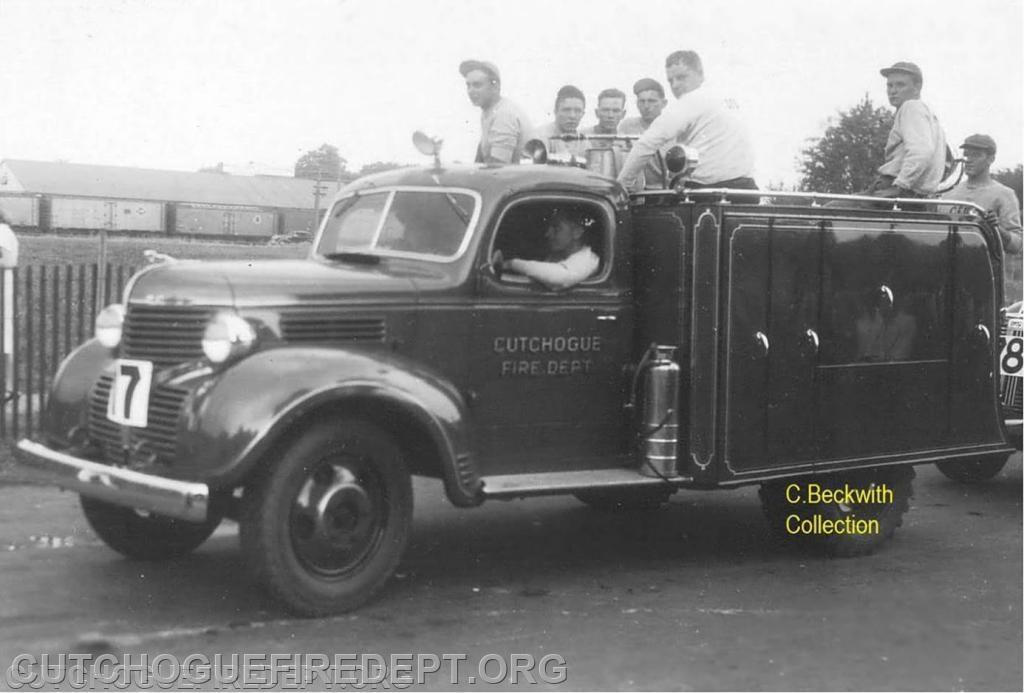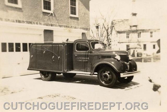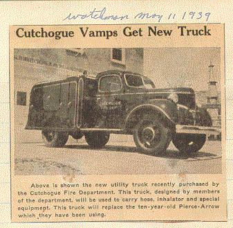 Pictured in the picture is CFD's 1939 utility truck. This truck served the citizens of the Cutchogue Fire District from 1939-1966. The trucks role was the departments earliest version of the modern day heavy rescue truck. The truck carried the departments first Aid equipment, various tools and equipment, generator, floodlights and supply hose.